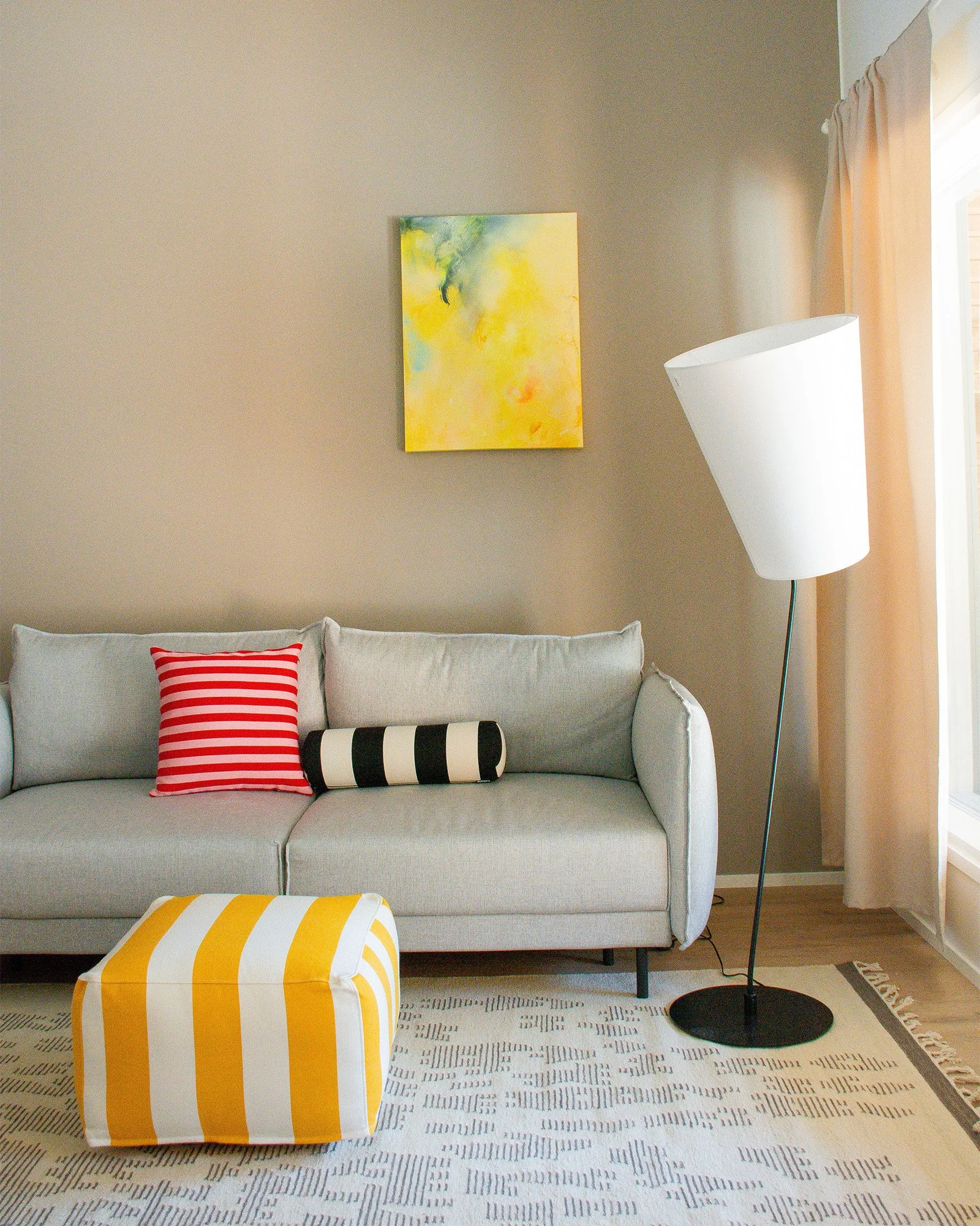 Luonnospalaverissa käytiin läpi suunnitelmani seinäväreistä sisustustyynyihin saakka. Asiakas oli tyytyväinen kokonaisuuteen, vain yksi irtovalaisin vaihdettiin toiseen.